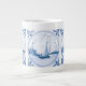 Arte bonito, azul e branca, de um veleiro navegando na água do porto, cercado por elementos florais. Esta arte é reproduzida a partir de um antigo azulejo pintado à mão. Clique em Personalizar para adicionar seu nome ou mensagem, alterar as cores de fundo e até salvar seu design para mais tarde.
