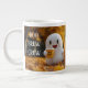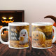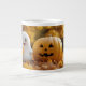 Um fantasma muito fofo bebe latte de abóbora (presumo) com seu amigo jack (ou lanterna). Beba o café da queda com... espírito...