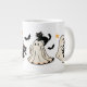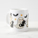 Adorável demais — essa caneca apresenta fantasmas alegres, um gato preto curioso e morcegos ferrantes para uma vibração de Halloween alegre.