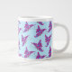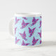 Caneca De Café Grande Borboletas roxas em azul claro, Impressão de borbo