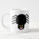 Esta caneca incrível apresenta uma aranha preta assustadora com oito pernas peludas, olhos amarelos com grandes pupilas pretas e sua boca aberta mostrando suas presas.