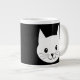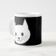 Uma bela imagem de um rosto de gato branco sobre um fundo preto.