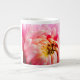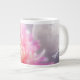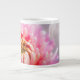 Imagem de um crisântemo rosa-claro com pistas de amarelo com lua de cheio e libélulas