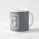 Caneca De Café Grande Cinza de carvão branco com estrutura inicial Monog