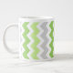verde limão chartreuse elegante e moderno, cinza e chevrons brancos zigzags padrão de listras de vintage, caneca de café jumbo, totalmente personalizável com seu texto ou foto, crie uma caneca de café verdadeiramente única para sua próxima festa de café.