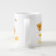 A funny cartoon illustration of a sleepy coffee cup with a yawn and messy hair, holding a sign that says 'But First, Coffee', bold and playful style, bright cheerful colors like yellow and orange, isolated on white background, high resolution, print-ready for a mug, simple and clean lines."