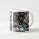 Fotografia de uma grande coleção de rochas e minerais impressos em ambos os lados da caneca. A coleção inclui agatos, hematite, quartzo, rosas de areia e muito mais.