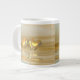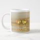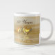 Uma caneca de café com a minha imagem de uma cena ouro e amarela com corações ouros flutuando na água. O texto personalizável diz "50 Anos".
