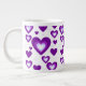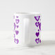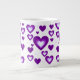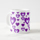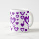 Corações Roxos Estilo de Café Mug: Jumbo Alguns dias, uma xícara de joe de tamanho normal simplesmente não serve. Quando precisar de uma dose extra de cafeína, pegue a sua caneca de café extragrande de Zazzle. Vai acomodar um cheio de 20 onças de Venti. Perfeito para sopa, cereal, sorvete ou chili também! Esta caneca gigante apresenta uma alça em forma de C para um corte confortável. Dimensões: 20 onças: 3,9" D x 4,5" H Micro-ondas e máquinas de lavar loiça seguras, construção cerâmica Satisfaz os requisitos da FDA para segurança das comidas e bebidas
