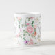 Uma coroa tradicional americana pageant, semelhante à hobnail, agarra os lados desta caneca jumbo é mostrada num bonito impressão floral rosa, SEM texto. Compre ou personalize esta caneca. Imagem do stock freepik.com