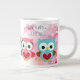 Pintura original de duas corujas bonitinhas, uma rosa para uma menina, a outra azul para um menino e cor d'água floral cor rosa floral florada florada florada. "Eu te amo com coruja meu coração" e "Coruja sempre te ama" cita. Você também pode personalizá-lo com um nome ou uma expressão favorita própria. Xícara de café jumbo.