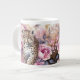 A imagem apresenta uma ilustração lindamente detalhada de um jovem leopardo cercado por um conjunto de flores vibrantes e florescentes. O leopardo, com sua pele pontilhada distintamente e olhos expressivos, está posicionado no centro com destaque, criando um ponto focal marcante. As flores circundantes, predominantemente em tons de rosa e roxo, acrescentam um toque macio e caprichoso à composição. O fundo inclui pedaços de cores douradas e pastéis, aprimorando o sonho geral e a sensação artística da imagem. Essa mistura cativante de vida selvagem e elementos florais torna a imagem simultaneamente atraente visualmente e única, perfeita para produtos que visam evocar um sentido de elegância e beleza natural.