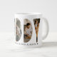DADDY 20 oz. jumbo mug personalized with 5 of your favorite photos which are displayed in the shape of the word DADDY with the words "Love you forever and always!" Perfect for your dad!