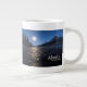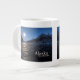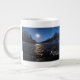 A lua de cheio brilhando no rio Portage, no Alasca. Também tem texto que diz "Dança do Alasca à Lua" por Ted Raynor