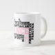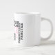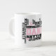 Jumbo Alguns dias, uma xícara de joe de tamanho normal simplesmente não vai funcionar. Quando precisar de uma dose extra de cafeína, pegue a sua caneca de café extragrande de Zazzle. Vai acomodar um cheio de 20 onças de Venti. Perfeito para sopa, cereal, sorvete ou chili também! Esta caneca gigante apresenta uma alça em forma de C para um corte confortável. Dimensões: Altura: 4,5" Diâmetro: 3,9" Capacidade: 20 onças de micro-ondas e lava-louças Forte, de cerâmica Cumprir ou exceder os requisitos do FDA para o Designer de Segurança de comidas e bebidas Dica: Para garantir o impressão de alta qualidade, note que a área de design personalizável deste produto mede 4" alto x 10,5" de largura