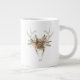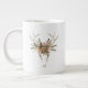 Deer Skull & Flowers I por Naomi McCavitt. Apresenta um crânio de cervo com flores e penas colocadas na cabeça.