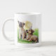Dois filhotes de German shepherd irmãos sentados na grama.