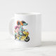 Caneca De Café Grande Dois Raptores De Cartoon Andando Um Patinete De Mo