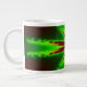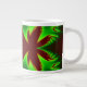 Esta caneca incrível apresenta uma imagem fractal que se parece com uma libélula vermelha mística cercada por chamas verdes brilhantes.