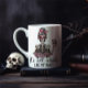 É a caneca gigante de café, Namorados de fora frios. © Desejos do Coração Escuro. Esta caneca tem uma senhora esquelética, segurando um café e as palavras Está frio lá fora como meu coração.