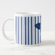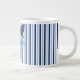 Caneca De Café Grande Estrias florais elegantes, azul monocromático