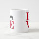 Uma caneca divertida para amantes de dachshund com o texto vermelho empilhado "AMOR" e o "O" substituído por uma silhueta de um dachshund.