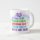 Jumbo Alguns dias, uma xícara de joe de tamanho normal simplesmente não vai funcionar. Quando precisar de uma dose extra de cafeína, pegue a sua caneca de café extragrande de Zazzle. Vai acomodar um cheio de 20 onças de Venti. Perfeito para sopa, cereal, sorvete ou chili também! Esta caneca gigante apresenta uma alça em forma de C para um corte confortável. Dimensões: Altura: 4,5" Diâmetro: 3,9" Capacidade: 20 onças de micro-ondas e lava-louças Forte, de cerâmica Cumprir ou exceder os requisitos do FDA para o Designer de Segurança de comidas e bebidas Dica: Para garantir o impressão de alta qualidade, note que a área de design personalizável deste produto mede 4" alto x 10,5" de largura