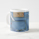 Ferramentas A Mug Features of Padre dá o bolso de trás em um par de jeans denim, uma chave inglesa no bolso, etiqueta nos jeans tem a palavra Pai feita de ferramentas de madeira, e uma fileira de ferramentas. Presente perfeito para Pai deste Dia de os pais. Este design foi criado usando arte original© www.delightful-doodles.com / PJG Scrapbook Heaven http://pjgscrapbookheaven.com / Cheryl Seslar Design www.cherylseslardesigns.com (Nenhum madeira, ferramentas ou denim real está neste produto de papel, ele foi projetado artisticamente para aparecer desta maneira)