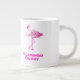 Mosaico, desenho gráfico, de uma ave Tropical Flamingo, exibida em padrões exóticos, Abstrato, de cor rosa-claro, violeta, fuschia, castanho-escuro e preto, contra fundo escuro.