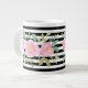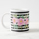 Aproveite sua bebida quente favorita nesta linda caneca com flores rosa em aquarela e listras pretas e brancas.