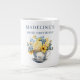 Comemore um marco no estilo com esta jumbo caneca de aniversário cerâmica, com um delicado buquê teacup de rosas amarelas, margaridas alegres e flores de cor azul. O elegante design floral, combinado com texto personalizado, faz desta caneca sobredimensionada uma guardiã atenciosa para um centenário ou qualquer celebração especial de um marco. Com o seu tamanho generoso, é perfeito para café, chá ou cacau quente e duplica como um presente ou favor de partido que pode ser apreciado diariamente. Uma bela maneira de combinar a praticidade com memórias duradouras.