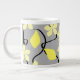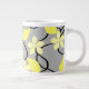 Caneca De Café Grande Flores amarelas e Cinzas. Padrão Floral.