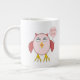 Esta caneca espetacular apresenta um desenho fofo de uma coruja rosa com olhos sonolentos, um bico aberto largo e penas fofinhas fofinhas. A coruja está segurando um balão cor-de-rosa. Há um bonito texto cor-de-rosa dentro no balão que diz, "Menina". Este é o presente perfeito para celebrar uma menina recém-nascida.
