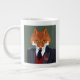 Este design apresenta um retrato muito elegante de uma raposa vestindo um terno e gravata.