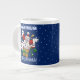 A funny snowman cartoon on a speciality mug for Christmas. Use "Personalize this template" to change the "MAXIMUM Christmas!" text and create a unique, customized item; text changes are reflected on both sides. Santa Claus. Snowmen. Christmas gifts. It's all here in one design, with this excited snowman dressed up as Santa Claus, jumping like a jack-in-the-box out of a Christmas present.