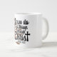 Jumbo Alguns dias, uma xícara de joe de tamanho normal simplesmente não vai funcionar. Quando precisar de uma dose extra de cafeína, pegue a sua caneca de café extragrande de Zazzle. Vai acomodar um cheio de 20 onças de Venti. Perfeito para sopa, cereal, sorvete ou chili também! Esta caneca gigante apresenta uma alça em forma de C para um corte confortável. Dimensões: Altura: 4,5" Diâmetro: 3,9" Capacidade: 20 onças de micro-ondas e lava-louças Forte, de cerâmica Cumprir ou exceder os requisitos do FDA para o Designer de Segurança de comidas e bebidas Dica: Para garantir o impressão de alta qualidade, note que a área de design personalizável deste produto mede 4" alto x 10,5" de largura