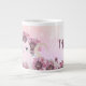 Caneca de gato kawaii, rosa, fofa e feminina com flores e monograma - nome.