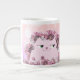 Caneca De Café Grande Gato Fofo Flores Rosa