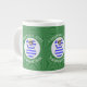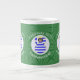 Jumbo caneca de café para ajudá-lo a celebrar o Natal com um anjo de cabelos pretos vestido na Bandeira da Grécia. O anjo grego voa no centro de um círculo branco, fractal, de quadrados pretos, colocado num fundo de quadrados verdes pretos. Adicione o seu nome, ou o nome de outra pessoa, se der como presente, para personalizar. Personalize mudando a ?? para um ano da sua escolha para criar uma caneca. Projetado para aumentar sua decoração de Natal nesta temporada de festas. Design nos três lados. Altere a fonte e/ou a cor do nome, feriado ou ano usando a opção "editar design".
