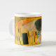 Café Mug com pintura a óleo de Gustav Klimt com folha de ouro The Kiss (1908). Um homem e uma mulher, vestindo cores ouros brilhantes, adoravelmente abraçando e beijando num campo de flores. Um presente de excelente para fãs de Arte Nouveau e de Arte Austríaca.