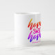 Jumbo Alguns dias, uma xícara de joe de tamanho normal simplesmente não vai funcionar. Quando precisar de uma dose extra de cafeína, pegue a sua caneca de café extragrande de Zazzle. Vai acomodar um cheio de 20 onças de Venti. Perfeito para sopa, cereal, sorvete ou chili também! Esta caneca gigante apresenta uma alça em forma de C para um corte confortável. Dimensões: Altura: 4,5" Diâmetro: 3,9" Capacidade: 20 onças de micro-ondas e lava-louças Forte, de cerâmica Cumprir ou exceder os requisitos do FDA para o Designer de Segurança de comidas e bebidas Dica: Para garantir o impressão de alta qualidade, note que a área de design personalizável deste produto mede 4" alto x 10,5" de largura