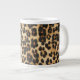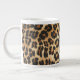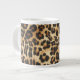 Esta caneca jumbo é mostrada com uma impressão de leopardo.