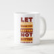 Jumbo Alguns dias, uma xícara de joe de tamanho normal simplesmente não vai funcionar. Quando precisar de uma dose extra de cafeína, pegue a sua caneca de café extragrande de Zazzle. Vai acomodar um cheio de 20 onças de Venti. Perfeito para sopa, cereal, sorvete ou chili também! Esta caneca gigante apresenta uma alça em forma de C para um corte confortável. Dimensões: Altura: 4,5" Diâmetro: 3,9" Capacidade: 20 onças