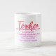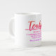 Jumbo Alguns dias, uma xícara de joe de tamanho normal simplesmente não vai funcionar. Quando precisar de uma dose extra de cafeína, pegue a sua caneca de café extragrande de Zazzle. Vai acomodar um cheio de 20 onças de Venti. Perfeito para sopa, cereal, sorvete ou chili também! Esta caneca gigante apresenta uma alça em forma de C para um corte confortável. Dimensões: Altura: 4,5" Diâmetro: 3,9" Capacidade: 20 onças de micro-ondas e lava-louças Forte, de cerâmica Cumprir ou exceder os requisitos do FDA para o Designer de Segurança de comidas e bebidas Dica: Para garantir o impressão de alta qualidade, note que a área de design personalizável deste produto mede 4" alto x 10,5" de largura