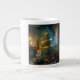Uma pintura digital de uma árvore de abeto decorada em ambientes fechados. Jumbo Mug