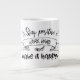 Jumbo Alguns dias, uma xícara de joe de tamanho normal simplesmente não vai funcionar. Quando precisar de uma dose extra de cafeína, pegue a sua caneca de café extragrande de Zazzle. Vai acomodar um cheio de 20 onças de Venti. Perfeito para sopa, cereal, sorvete ou chili também! Esta caneca gigante apresenta uma alça em forma de C para um corte confortável. Dimensões: Altura: Diâmetro: 3,9" Capacidade: 20 onças de micro-ondas e de lava-louças Forte, construção cerâmica Satisfaz os requisitos do FDA para segurança de comidas e bebidas Impressos a pedido em Reno, NV