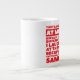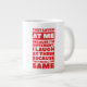 Jumbo Alguns dias, uma xícara de joe de tamanho normal simplesmente não vai funcionar. Quando precisar de uma dose extra de cafeína, pegue a sua caneca de café extragrande de Zazzle. Vai acomodar um cheio de 20 onças de Venti. Perfeito para sopa, cereal, sorvete ou chili também! Esta caneca gigante apresenta uma alça em forma de C para um corte confortável. Dimensões: Altura: 4,5" Diâmetro: 3,9" Capacidade: 20 onças de micro-ondas e lava-louças Forte, de cerâmica Cumpre ou excede os requisitos do FDA para a segurança das comidas e bebidas Impressos a pedido em Reno, NV Designer Dica: Para garantir o impressão de mais alta qualidade, note que a área de design personalizável deste produto mede 4" alto x 10,5"