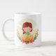 Aproveite sua bebida favorita com esta caneca com um design de leitor de outono!