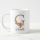 Caneca De Café Grande Letra Personalizada G Dourado Folha Blush Rosas Co