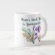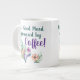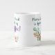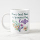 Esta caneca branca divertida é perfeita para seu bebedor de café (ou chá) favorito. A mensagem, que está na frente e atrás da caneca, diz: "Mãe Good Mood é Patrocinado por Café!" Você pode personalizar o texto com outro membro da família ou um nome. Por baixo do texto há um design floral com cores que se coordenam com o texto.